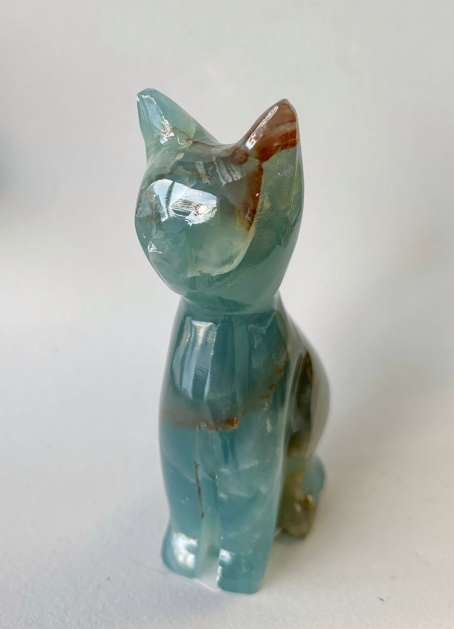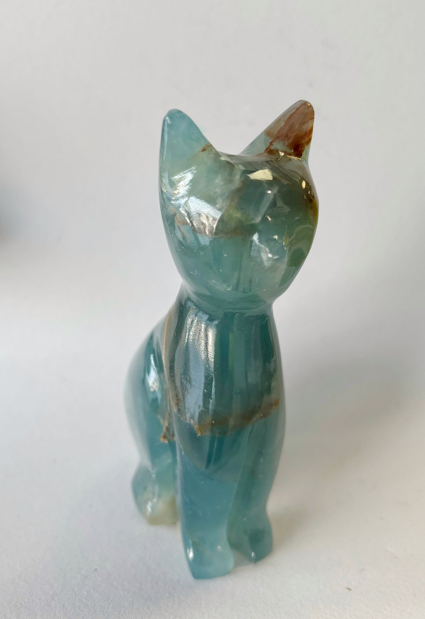 Gorgeous large 4” blue onyx cat crystal carving. Beautiful from all angles