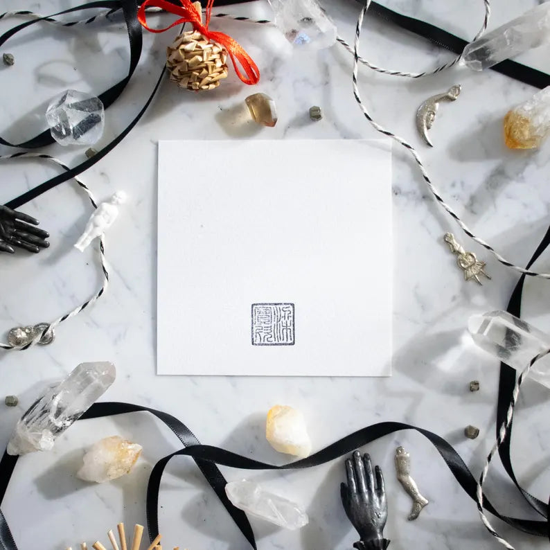 A wide-eyed kitty clutches a flashlight in the dark, perfectly capturing a mix of spookiness and charm. Surrounded by stars and carrots in an ornate frame, this illustration makes a delightful collectible for cat lovers and fans of whimsical Halloween touches. Printed with archival inkjet (giclée) on textured fine art paper, it brings museum-quality detail in a small, giftable format. Each print comes backed with a sturdy board and sealed in a clear protective cello sleeve, making it shop-ready and perfect for gifting. Image size: 3 x 3 inches Paper size: 4 x 4 inches Material: Archival giclée print on textured art paper Signed by the artist